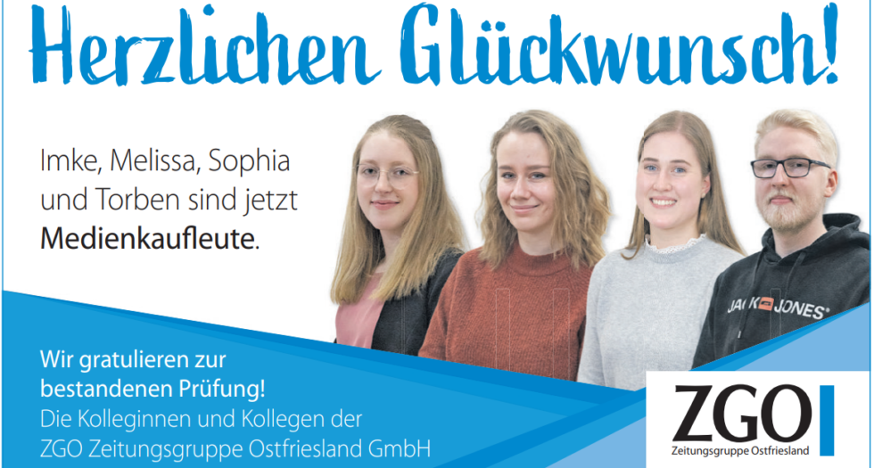 Die Zeitungsgruppe Ostfriesland ist das multimediale Medienhaus in und für Ostfriesland. Gedruckt, geklickt, gescrollt: Mit unseren Titeln Ostfriesen-Zeitung, Ostfriesische Nachrichten, General-Anzeiger und Borkumer Zeitung erreichen wir die Menschen in Ostfriesland und der Region. Wir machen TV, Radio und vieles mehr! Dafür suchen wir Unterstützung. Schauen Sie auf unserer Karriere-Seite vorbei und werden Sie Teil unserer ZGO-Familie. Wir freuen uns!