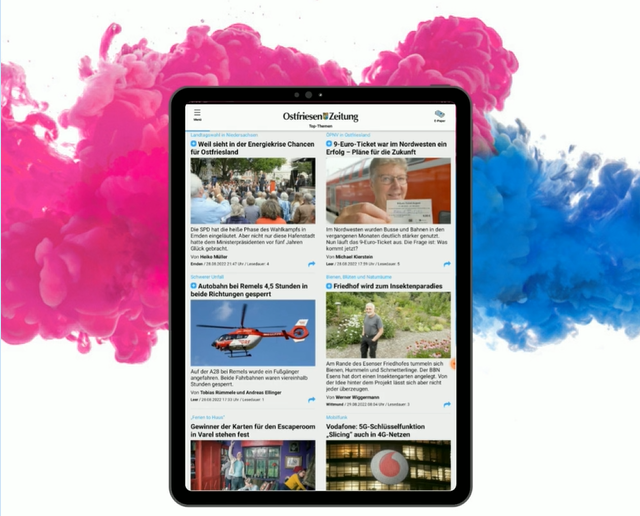 In der Flut von Artikeln auf den Homepages der Zeitungstitel der Zeitungsgruppe Ostfriesland, werden zur besseren Übersicht einzelne Artikel zu bestimmten Themen auf unseren „Themenseiten“ gesammelt, damit sich unsere Kunden vollumfänglich zu einem Themen informieren können.